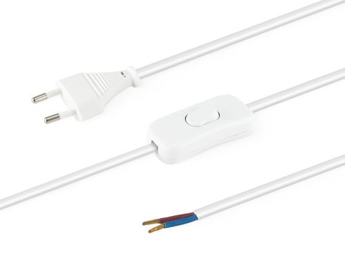 ** Caratteristiche **Colore cavo: BiancoLunghezza Cavo: 2mFormazione cavo: 2 x 0.75mm²Tipo Cavo: PiattoPortata: 2.5ATensione massima: 250VNome tecnico: H03VVH2-FInterruttore: Volante** Connettore A **Tipo Connettore A: Spina 2 poli Europa Dritto** Connettore B **Tipo Connettore B: Cavo Spellato