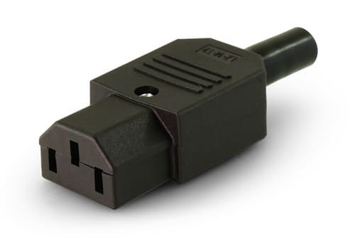 ** Caratteristiche Generali **Genere: PresaNorma di riferimento: EN 60320Foglio tecnico: C13Orientamento: Dritto** Caratteristiche Elettriche **Corrente max: 10ATensione max: 250V** Caratteristiche Meccaniche **Materiale Corpo: Termoplastico rinforzato con fibra di vetroMateriale Contatto: Lega di rameMontaggio connettore: volante** Caratteristiche Termiche **Temperatura di lavoro: 0/70°C