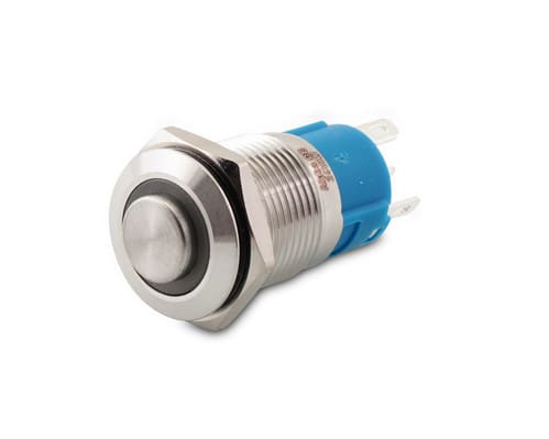 ** Caratteristiche Generali **Attuatore: Pulsante antivandaloSerie: AntivandaloForma dell'attuatore: In rilievoLuminoso: siColore illuminazione: BluTensione illuminazione: 24Vac/dcColore: LucidoMateriale attuatore: AcciaioTipi contatti: SPDTPortata: 5A@250Vac, 5A@36VdcN. poli: 1Stato dei contatti: ON/ONTipo terminale: a saldareN. terminali: 5Montaggio: Pannello con dadoForo fissaggio: ø16mmGrado di protezione: IP65Temperatura di lavoro: -10 / 40°C