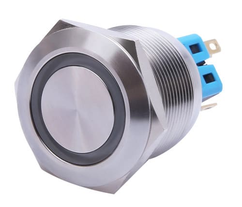 ALPHA ELETTRONICA SR - ALP330-080-4 Pulsante momentaneo antivandalo ø25mm luminoso Verde - 24V - 4P - SPST - 2 x N.C. + 2 x N.A. - 5A@250Vac - 10 term. a saldare