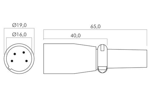 ** Caratteristiche Generali **Genere: SpinaTipo Connettore: XLROrientamento: DrittoNr. Poli: 4Adatto per: 40-74/40-84** Caratteristiche Meccaniche **Materiale Corpo: Ottone nichelatoMateriale Contatto: Ottone nichelatoTipo contatto: a saldareMontaggio connettore: volante