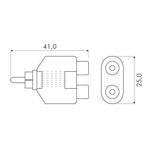 ** Caratteristiche Generali **Genere: AdattatoreOrientamento: DrittoTipo Connettore A: RCAGenere A: SpinaTipo Connettore A: Spina RCATipo Connettore B: RCAGenere B: PresaTipo Connettore B: 2x Presa RCA** Caratteristiche Elettriche **Schermatura: si** Caratteristiche Meccaniche **Materiale Corpo: PVCMateriale Contatto: Ottone nichelatoLunghezza Cavetto: 2cm