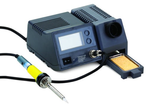 Stazione saldante con controllo della temperatura da 150° a 450°C.Temperatura visualizzata sull'ampio display e facilmente impostabile tramite pulsanti.** Caratteristiche Generali **Alimentazione: ElettricaFunzioni: SaldatorePotenza: 48WTensione di funzionamento: 230VFrequenza: 50HzTemperatura: 150/450°CMateriale corpo: PlasticoClasse di isolamento ICompleto di cavo di alimentazione non separabile con spina Schuko.
