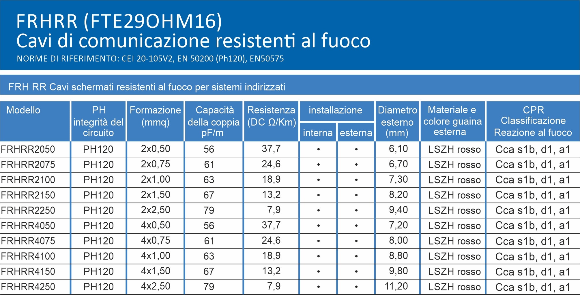 BETACAVI SRL - BTVFRHRR2150WR1000 FIRE 2X1,50 PH30-PH120 SCH.LSZH BOB.1000 - FRHRR2150WR1000