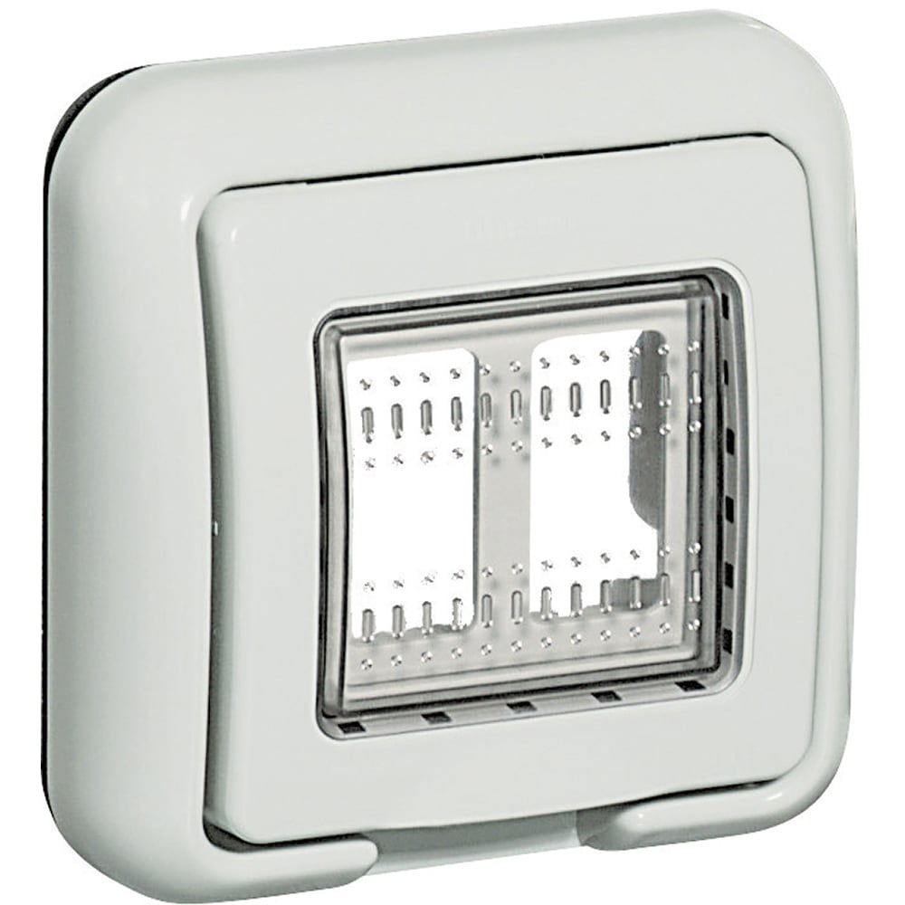 coperchio IP55 per installazione incassata in scatola 502E di 2 moduli Màtix - colore grigio RAL7035. Nota: il grado di protezione IP55 si ottiene a coperchio chiuso e con articolo installato su pareti lisce, senza scanalature ed impermeabili (piastrellelisce, marmo)