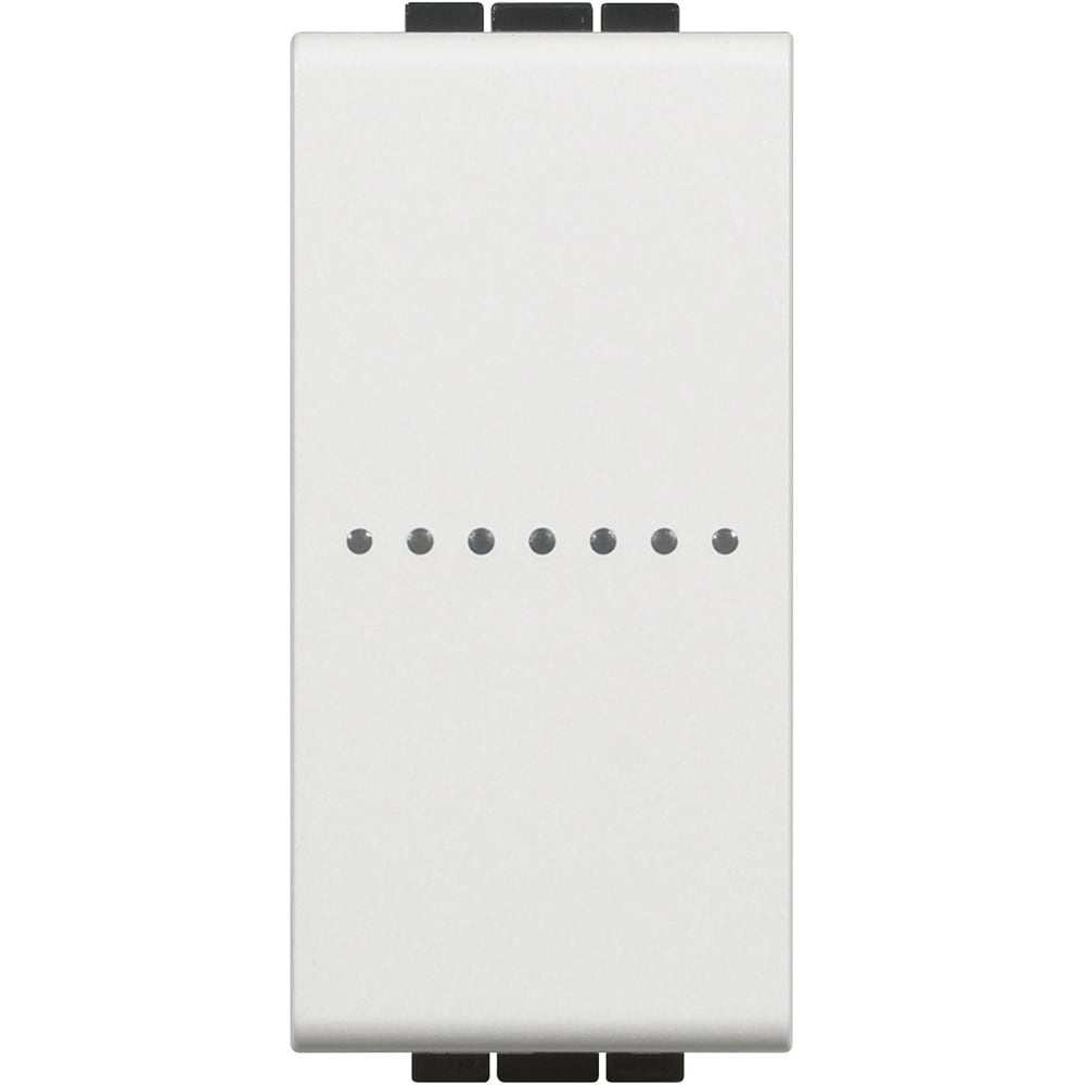 Interruttore/dimmer connesso. Permette di controllare le luci localmente o da remoto tramite APP Home+Control. Si installa come un interruttore tradizionale ed è compatibile con i carichi ad incandescenza o a LED (dimmerabili), di tipo capacitivo, con potenza max. 150W a 230Va.c.. E dotato di un LED blu per le funzionalita di localizzazione e stato carico, configurabile da APP. Puo essere collegato a uno o piu pulsantitradizionali o associato ad uno o piu comandi wireless. Attenzione: la funzione varialuce si attiva solo tramite APP ed è necessaria la connessione al neutro. Alimentazione 110-230 Va.c. - 1 modulo