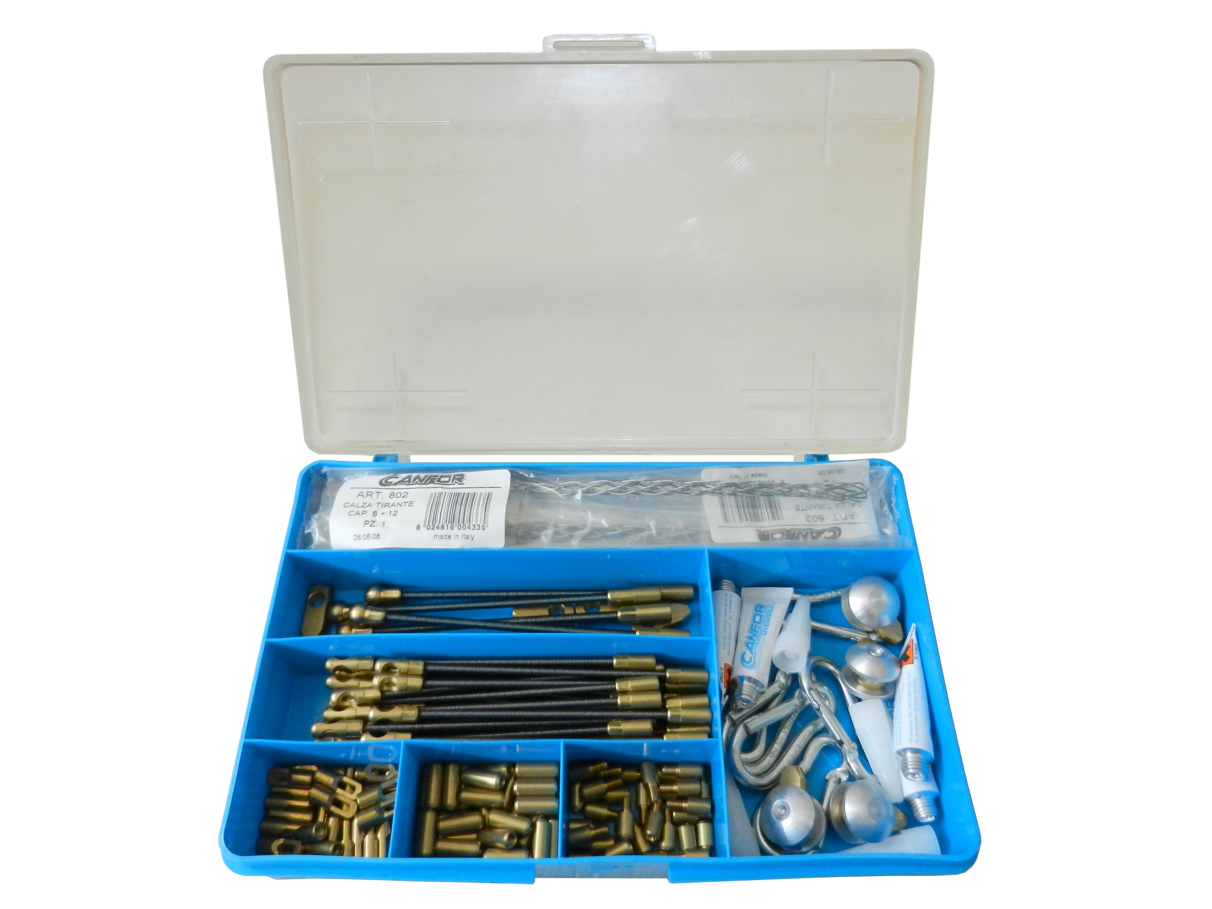 Scatola di accessori a 7 scomparti composta da: art. 601/01 pz. 30 - art. 601/02 pz. 30 - art. 601/03 pz. 30 - art. 601/04 pz. 30 - art. 601/06 pz. 10 - art. 631/01 pz. 5 - art. 631/02 pz. 5 - art. 631/03 pz. 5 - art. 631/04 pz. 5 - art. 645/03 pz. 5 - art. 801 pz. 5 - art. 802 pz. 5
