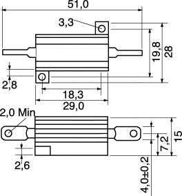 RESISTENZE A FILO CON RADIATORE METALLICO 50W WH50-1R5-5%. Alte prestazioni in temperatura e dissipazione. OMOLOGAZIONI:CECC. POTENZA:25W a 25°C. TOLLERANZA:±5%. CORPO:alluminio. TEMP.LAVORO:-55°÷+200°C. MODELLO:WH50.