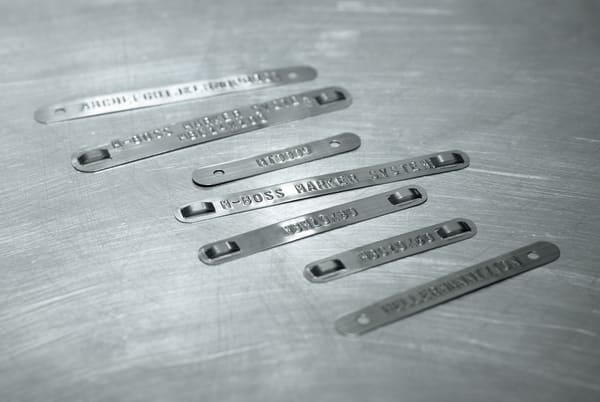 Punzonatrice compatta per targhette metalliche. Meccanismo di punzonatura silenzioso, adatto anche agli uffici. I punzoni sono stati testati per resistere ad almeno 1,5 milioni di cicli. Sistema di raffreddamento ottimizzato per resistere a cicli di utilizzo di 8-10 ore. Utilizza TagPrint Pro per creare e modificare i testi da punzonare. Utilizza una presa di corrente standard. Fornita con i seguenti 42 caratteri da 4 mm:. Lettere: A B C D E F G H I J K L M N O P Q R S T U V W X Y Z. Numeri: 0 1 2 3 4 5 6 7 8 9. Simboli: & - / . , '. Su richiesta altri caratteri fino ad un massimo installato di 60. M-BOSS Compact è una punzonatrice per targhette in acciaio compatta e di facile funzionamento. Semplice da installare e da utilizzare, necessita solamente di una presa di corrente e di un collegamento ad un PC. I testi da punzonare vengono creati con il software TagPrint Pro e vengono inviati direttamente alla stampante. La stampante è dotata di un sistema di raffreddamento ottimizzato che garantisce un funzionamento continuo di 8-10 ore. Le targhette punzonate possono essere fissate a tubazioni o cavi con le fascette della serie MBT di larghezza 4,6 mm, utilizzando l'attrezzo manuale MK9SST per tirarle.