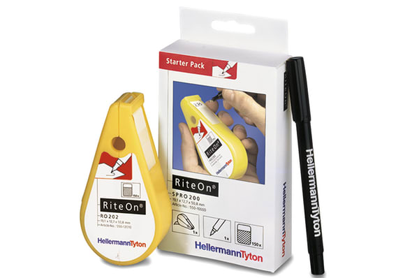 Dispenser compatto portatile di etichette autolaminanti. Facilita la scrittura e l'applicazione delle etichette. Copre una vasta gamma di diametri di cavo. Ideale per piccoli volumi, per lavori di manutenzione e riparazione. Il testo si può scrivere con lo speciale pennarello con inchiostro ad asciugatura rapida. Materiale sviluppato specificatamente per etichette da avvolgere intorno a cavi e fili. La struttura dell'etichetta si adatta in modo tale da assicurare che una volta applicata non si avranno sollevamenti della parte laminante. Lo SPRO200-1401-WH Starter Pack contiene tutto il necessario per cominciare ad identificare: 1 x RiteOn dispenser 1 x R202 bobina di 150 etichette autolaminanti per diametri da 6 mm a 12 mm 1 x T82S-BK pennarello nero indelebile
