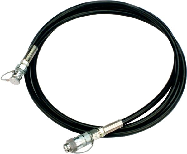 Tubo flessibile ad alta pressione per il collegamento delle teste oleodinamiche alle pompe oleodinamiche a pedale o elettriche, non idoneo per il tranciacavi isolato. Innesti rapidi femmina e maschio a bloccaggio automatico montati sulle estremità con relativi tappi di protezione