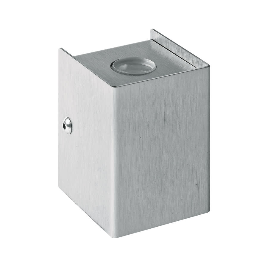 Applique da esterno, monoemissione; su superficie (parete); corpo e ghiera in acciaio inox AISI 316L, vetro extrachiaro trasparente temprato. 2W. 500 mA. 4000 K. 10°.