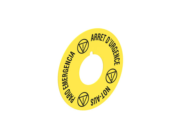 Disco plastico per pulsante a fungo ARRET D'URGENCE / NOT-AUS / PARO EMERGENCIA