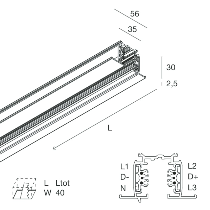 NOVALUX SPA - NOX106725.01 BINARIO ELETTRIFICATO DA INCASSO TRIFASE 7 POLI. Garanzia 5 anni.
