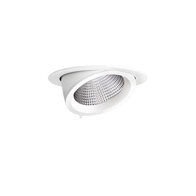 EB434 LED SPOT REFLECTOR - Proiettore LED da incasso per interni, composto da: Corpo del faretto e anello in alluminio pressofuso, verniciato a polveri. Riflettore orientabile orizzontalmente verso l‘interno e l‘esterno grazie al particolare meccanismo cardanico. Orientabile a 60° (-15 a 45°), rotazione su 355°. Riflettore in alluminio purissimo con sfaccettature sferiche ad alta brillantezza per il massimo rendimento della lampada ed una resa cromatica neutra. Riflettore in versione Spot. Tolleranza cromatica (MacAdam) = 3 SDCM. Il montaggio a soffitto non richiede l'uso di utensili. Completo di alimentatore elettronico. Fissaggio a soffitto mediante molle. Completo di vetro di protezione. LED 27W 3520lm 4000K CRI 80 - 2 x 8°. Colore: Bianco RAL9016 / Goffrato.