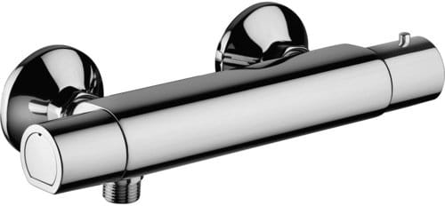 Miscelatore doccia o vasca termostatico Paffoni Equo Star New. Miscelatore termostatico monocomando per doccia o vasca con attacco inferiore 1/2"G. Il rubinetto Paffoni Equo Star New ha finitura cromata lucida, e si completa con un doccino a parete a propria scelta. I miscelatori termostatici ermettono di mantenere costante la temperatura dell'acqua, anche nel caso di una variazione di pressione sulle mandate dell’impianto, per esempio nel caso di apertura contemporanea di altri rubinetti in casa. L’acqua calda e l’acqua fredda, infatti, vengono miscelate dalla cartuccia termostatica ad una temperatura preimpostata dall’utente, regolando costantemente la miscelazione in base alle variazioni dell’impianto, evitando così aumenti o crolli improvvisi della temperatura.