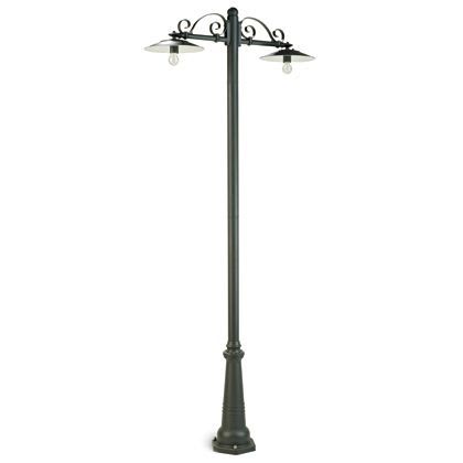 Struttura in pressofusione di alluminio. Piatti verniciati e smaltati bianco. Dima per il fissaggio a terra, dispositivo di connessione e accessori per il fissaggio. Portalampada in porcellana con attacco E27. Copri portalampada con guarnizione in gomma siliconica. Adatta per lampade a risparmio energetico con protezione in silicone. Lampada esclusa. Alimentazione 230V ~ 50Hz. Classe di protezione: IP43 Numero lampade: 2 Potenza massima lampade: 25W