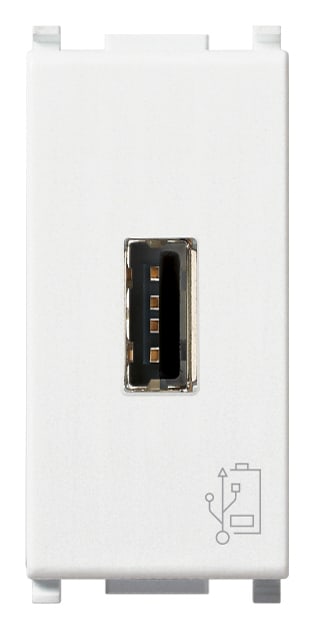 Unità di alimentazione 5 V 1,5 A per dispositivi elettronici, 1 uscita USB frontale, alimentazione 120-230 V~ 50/60 Hz - 1 modulo. Il dispositivo va utilizzato per ricaricare i telefoni cellulari e tutti gli apparecchi elettronici che offrono la possibilità di ricarica da una qualsiasi presa standard USB