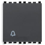 Pulsante 1P NO 10 A 250 V~, simbolo campanello illuminabile, tasto sostituibile, grigio - 2 moduli