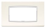 Placca Classic 4 moduli, metallo, bianco artico, cornice cromata