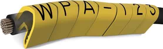 Marcatori privi di alogeni e a ridotto impatto ambientale per linee e cavi. Fissaggio con fascette serracavo.