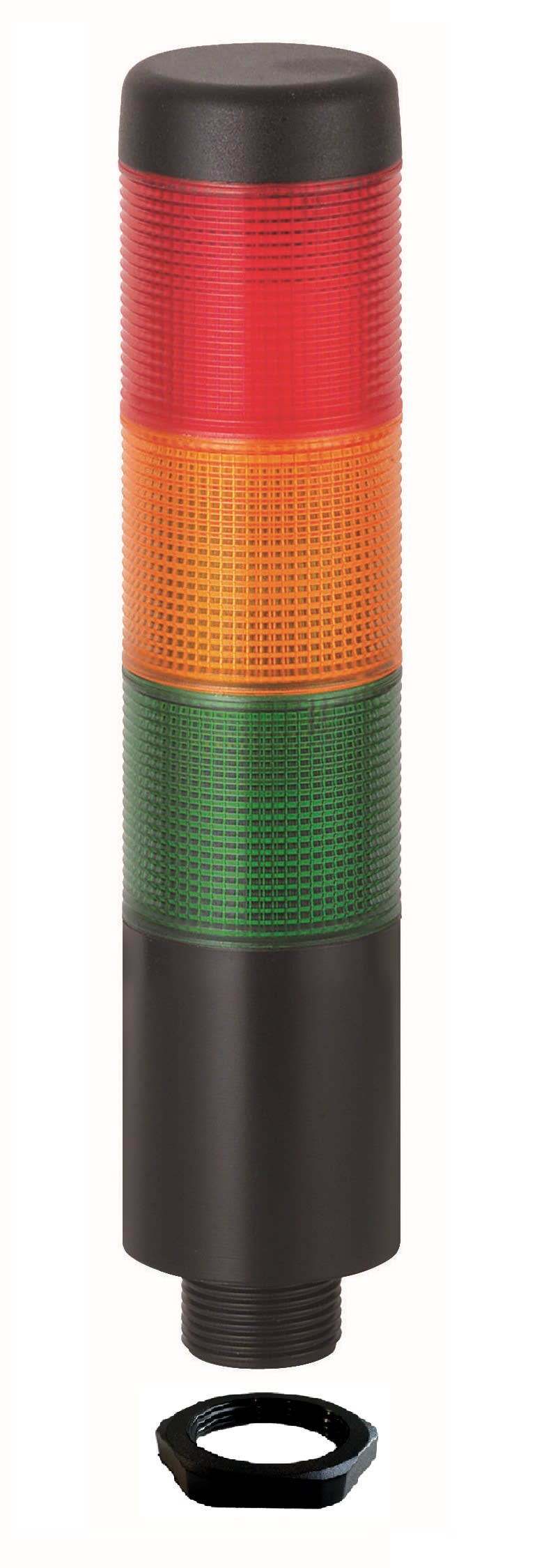 K37 Kabel EM 24VAC/DC GN/YE/RD. Fertig konfigurierte Signalsäule mit drei optischen Stufen (grün/gelb/rot) Ohne Summer LED-Dauerlicht Mit Kabelanschluss