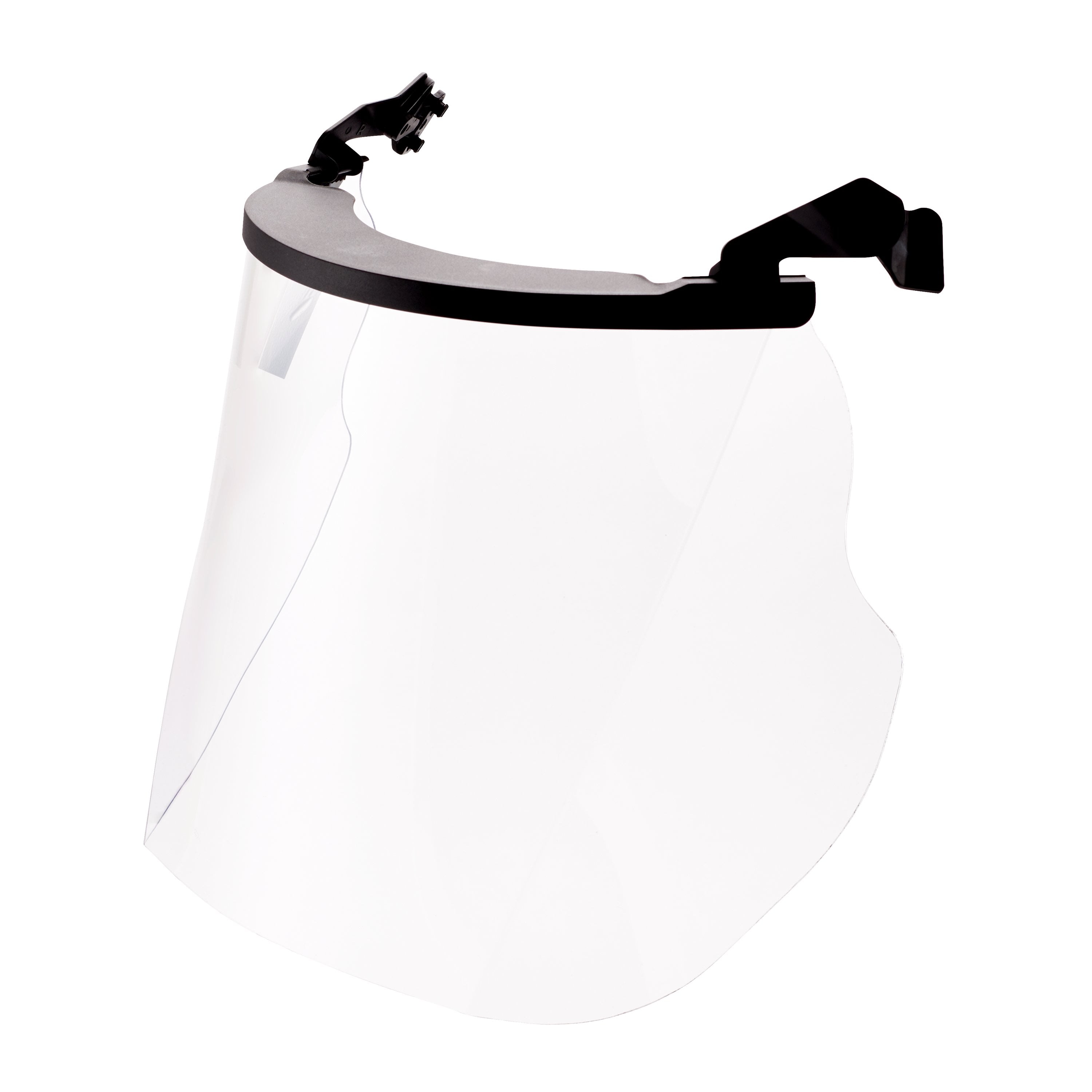 Visiera 3M™, visorino corto, policarbonato, trasparente, misura grande, V4KK Ottieni protezione da impatti, metalli fusi e solidi incandescenti con la visiera 3M™ V4KK. La nostra visiera in policarbonato trasparente dello spessore di 1,2 mm con visorino corto è progettata per gli elmetti 3M™. Soddisfa i requisiti di protezione F per gli schermi di protezione dagli impatti a bassa energia.