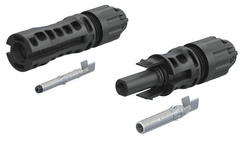 ** Caratteristiche Generali **Serie produttore: SolarlineTipo Connettore: MC4 Evo 2Colore: NeroGenere Corpo: Maschio+FemminaGenere Contatto: Maschio+FemminaSerie Fornitore: MC4-Evo 2** Caratteristiche Elettriche **Corrente max: 30ATensione max:1500VTensione Isolamento: 6 KV** Caratteristiche Meccaniche **Tipo contatto: a crimpareTerminazione: a crimpareMontaggio connettore: volanteSezione conduttori: 4-6mm²Diametro cavo min: 4.7mmDiametro cavo max: 6.4mmGrado di protezione: IP65** Caratteristiche Termiche **Classe di infiammabilità: UL94V-0