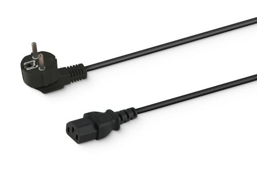 ** Caratteristiche **Colore cavo: NeroLunghezza Cavo: 2.5mFormazione cavo: 3 x 0.75mm²Tipo Cavo: TondoPortata: 10ATensione massima: 250VNome tecnico: H05W-F** Connettore A **Tipo Connettore A: Spina Schuko 90°** Connettore B **Tipo Connettore B: Presa IEC320 C13 Dritto