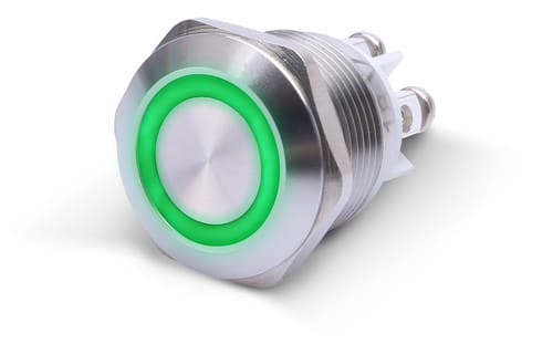 ALPHA ELETTRONICA SR - ALP330-060-4 Pulsante momentaneo antivandalo ø19mm luminoso Verde - 24V - 1P - SPST - OFF/(ON) - N.A. - 5A@250Vac - 4 term. vite
