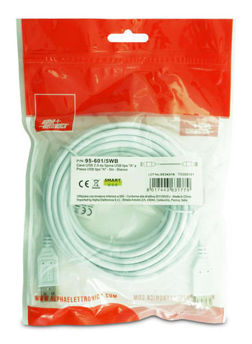 ALPHA ELETTRONICA SR - ALP95-601/5WB Cable from USB type "A"plug to USB type "A"socket - 5m - White - 95-601/5WB