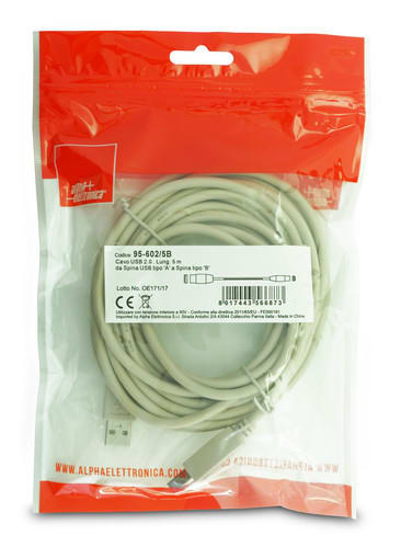 ALPHA ELETTRONICA SR - ALP95-602/5B USB plug type "A"cable with USB plug type "B"- 5m - Ivory - 95-602/5B
