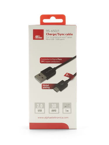 ALPHA ELETTRONICA SR - ALP95-650/1 Cable from USB type "A"plug to Micro USB type "B"plug - 1m - Black - 95-650/1