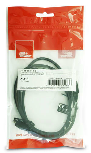 ALPHA ELETTRONICA SR - ALP95-653/1.5B Cable from USB type "A"plug to Micro USB type "B"plug - 1,5m - AWG24 - 95-653/1.5B