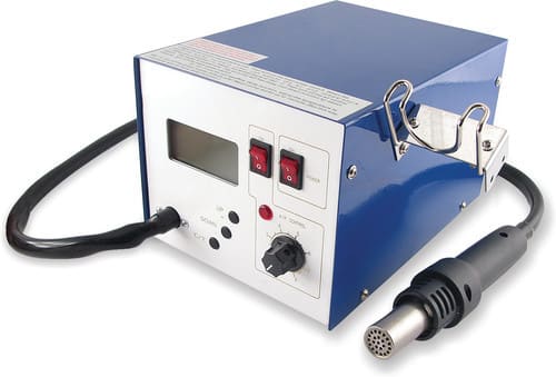 Stazione ad aria calda per saldatura e dissaldatura di componenti a montaggio superficiale SMD. La stazione è adatta per un utilizzo professionale e si rivolge a laboratori, centri assistenza e industrie nel campo dell'elettronica.La temperatura e la velocità del flusso dell'aria sono regolabili.Il display LCD permette la visualizzazione dei parametri di temperatura.L'ampia potenza consente alla stazione di raggiungere velocemente la temperatura impostata e allo stesso tempo di mantenerla stabile.Inclusi nella confezione 4 ugelli differenti per adattarsi al tipo di lavorazione da effettuare.** Caratteristiche Generali **Alimentazione: ElettricaFunzioni: Aria caldaPotenza: 320WTensione di funzionamento: 230VFrequenza: 50HzTemperatura: 160/480°CMateriale corpo: MetallicoDimensioni: 145mm x 160mm x 225mmCapacità: 24L/minLa confezione contiene i seguenti ugelli:79-3901 (ø2,5)79-3902 (10x10mm)79-3903 (15x15mm)79-3907 (ø4mm)79-3941 (FP Pick-up tube)79-3940 (FP Pick-up Wire)79-3942 (FPPick-up Wire)