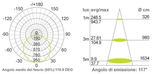 Angolo di emissione del fascio luminoso - A raggio ampissimo > 80°