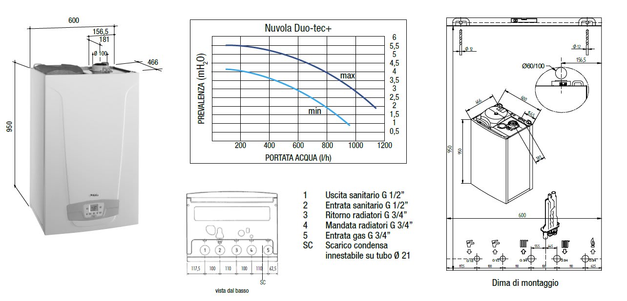 Caldaie murali a gas a condensazione per riscaldamento e produzione ACS con accumulo. La nuova gamma di caldaie a gas a condensazione Duo-tec+ è stata specificatamente progettata rispettando i requisiti delle Direttive Ecodesign e Labelling, per renderlaparticolarmente adatta sia in caso di nuove costruzioni sia in sostituzione di un vecchio generatore. • ampio campo di modulazione 1:7 maggiore efficienza e silenziosità • GAC (gas adaptive control): controllo automatico della combustione • fino a 500 l d’acqua calda in 30 minuti (ΔT 30°C) • bollitore da 40 l in acciaio inox • pannello comandi digitale con ampio display LCD retroilluminato • pompa di circolazione ad alta efficienza a modulazione totale • vaso di espansione sanitario disponibile DI SERIE (per mod. 33 kW) e come accessorio (per mod. 24 kW) • tubo di scarico Ø50 mm: soluzione per risanamento canne fumarie – mod 24 kW • kit installazione DI SERIE (rubinetto gas / entrata sanitario / raccordi telescopici) • funzione antigelo e grado di protezione IPX5D