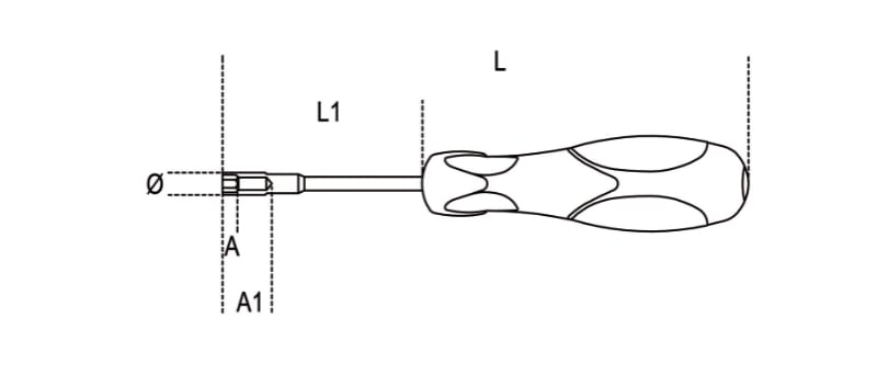 ? Foro di scarico interno per la manovra su dadi con parti filettate sporgenti.? Triplice marcatura della misura sulla testa.