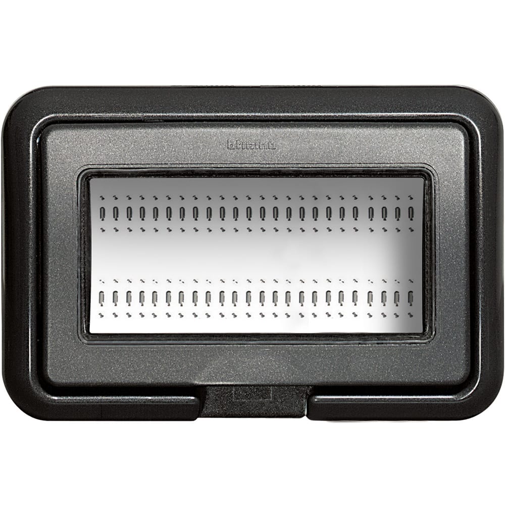 coperchio IP55 per installazione incassata in scatola 504E di 4 moduli LivingLight o Luna - colore antracite. Nota: il grado di protezione IP55 si ottiene a coperchio chiuso e con articolo installato su pareti lisce, senza scanalature ed impermeabili (piastrelle lisce, marmo)
