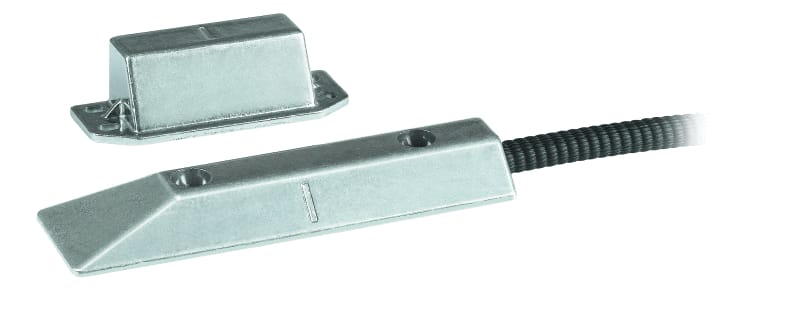 Sensore magnetico con contatto NC e linea di protezione - ad elevata resistenza meccanica per porte basculanti o scorrevoli. Predisposto per installazione a pavimento. Utilizzabile anche con il nuovo Antifurto filare-radio.