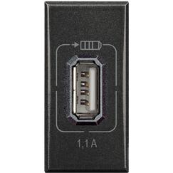 Caricatore USB con tensione 5 Vd.c. per la sola ricarica di dispositivi elettronici fino a 1500 mA quali cellulari, smartphones, tablets e similari - alimentazione 230 Va.c. - 1 modulo - Antracite