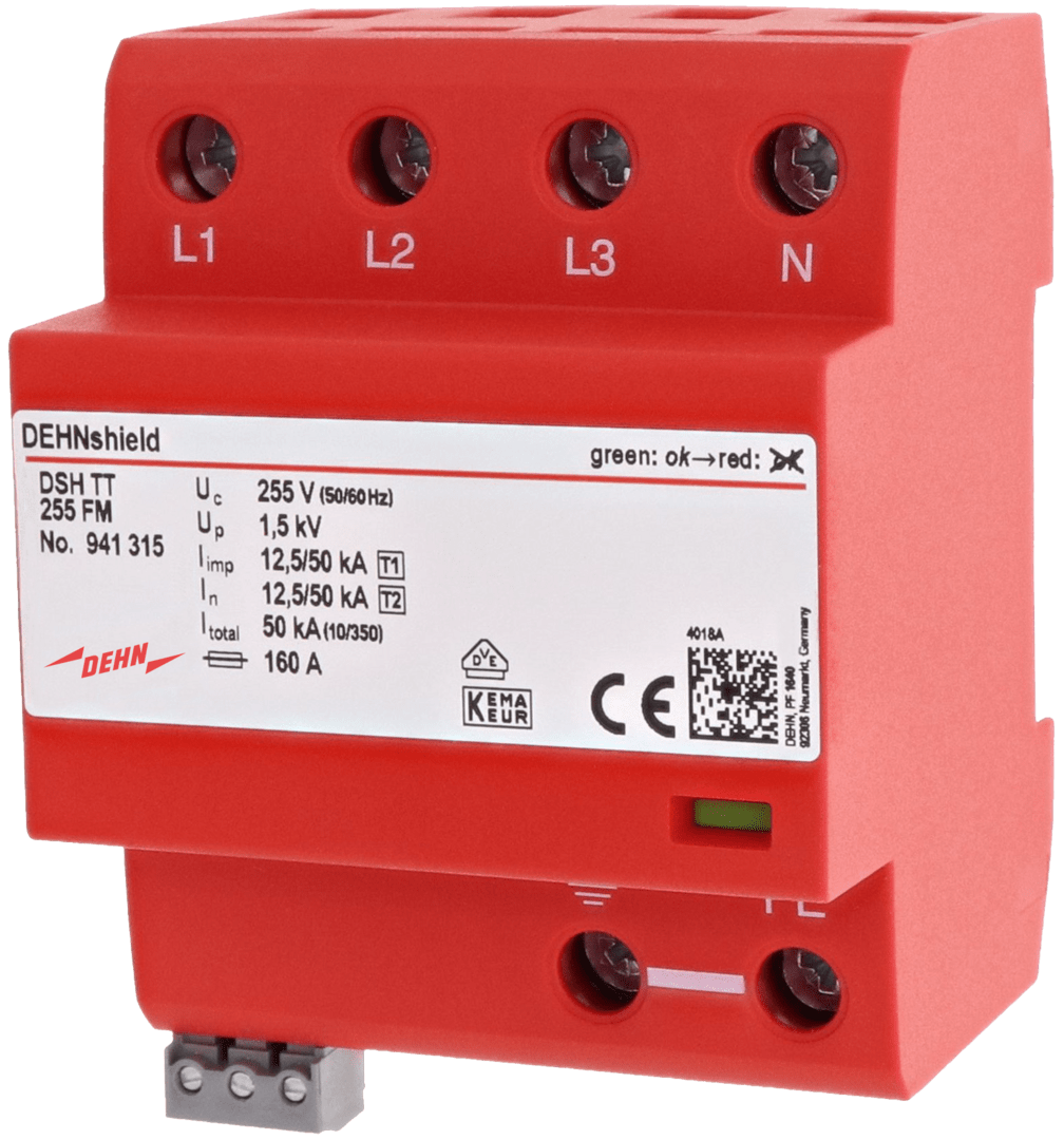 DEHN ITALIA SPA - DEH941315 Scaricatore combinato DEHNshield, ottimi zzato all' applicazione Tipo 1+2 per ret i trifase TT e TNS