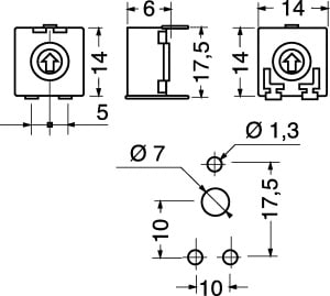 TRIMMER A STRATO DI CARBONE ACP 14x14 MONTAGGIO ORIZZONTALE REGOLAZIONE VERTICALE ROTORE CON TAGLIO PER CACCIAVITE. MAX POT. A 40° C:0,25W. MAX TENSIONE:250 VCC. ANG.ROTAZ.:265°±5°. TOLLERANZA:±20%. TEMP.LAV.:-25°÷+70°C. CURVA:lineare. PASSO:10x17,5 mm. CA14PV17,5-22KA2020.