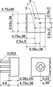 TRIMMER CERMET 20 GIRI 19mm REGOLAZIONE ORIZZONTALE. POTENZA:0,75W at 85°C. RES. ISOLAM..:1000 MOhm. TEMP.LAVORO.:-55°C-+125°C. TOLLERANZA:10%. CACC.TARATURA:7/1856. MODELLO:89P. Resistenza: 10 KOHM.