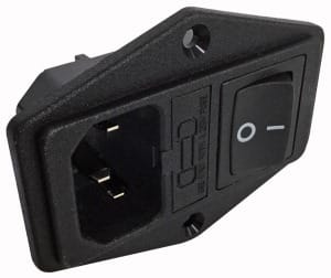 SPINA TRIPOLARE C14 CON PORTAFUSIBILE ED INTERRUTTORE A BILANCERE. FISSAGGIO:fori laterali. 0PORTATA:10 A - 250 V. CORPO:bachelite. CONTATTI:ottone nichelato. FISSAGGIO CAVO:faston 4.8. PER PRESE:13/847. CAVI:6/298.