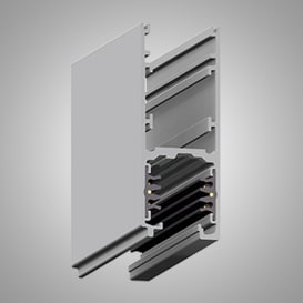 EUROSTANDARD PLUS TRACK DALI H. Nel binario sono alloggiati i conduttori, racchiusi in profili estrusi rigidi di materiale isolante ad alta rigidità elettrica. I 3 conduttori di fase con il neutro comune formano 3 circuiti distinti permettendo 3 accensioni separate. Alimentando il binario alla rete monofase il carico massimo applicabile è di 16A (3500 VA) suddivisibile nei 3 circuiti. L’allaccio alla rete elettrica trifase permette un carico complessivo di 16A (10500 VA) suddivisibile nei 3 circuiti (3x3500 VA). La posizione laterale del contatto di terra rende la struttura del binario asimmetrica e pertanto i giunti di collegamento dovranno essere scelti diconseguenza. Realizzato in alluminio. Colore: Bianco RAL 9003. RDD: Il cablaggio di serie è 230-240V/50-60Hz, elettronico dimmerabile predisposto per la regolazione con segnale DALI. Dimensone: 1mt.