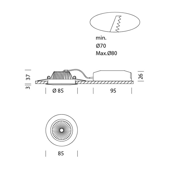 Diametro incorporato - 70...80 mm