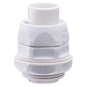 Raccordo girevole dritto con passo PG, per raccordare guaine spiralate con scatole di derivazione in fori filettati con passi PG o fori non filettati, mediante il dado e la guarnizione in dotazione.