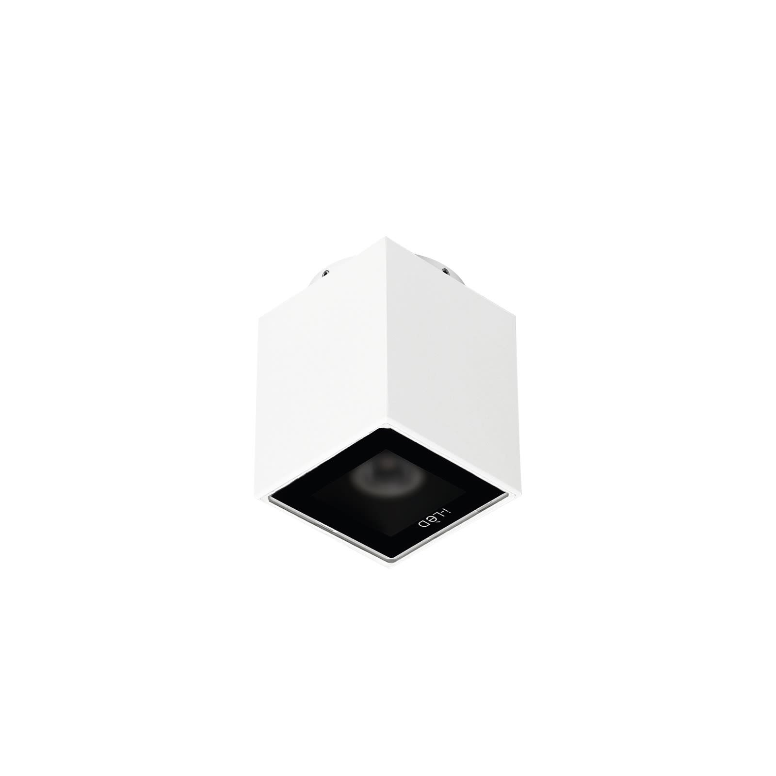 Plafone a singola emissione per applicazione outdoor. La sorgente luminosa LED, di colore bianco naturale, con distribuzione luminosa spot, è composta da 1 LED arrayled, con una CCT 4000 K ed un CRI 80; il flusso luminoso della sorgente è di 831 lm, con un'efficienza nominale di 127.8 lm/W. Il corpo dell'apparecchio, realizzato in alluminio pressofuso en ab - 46100, presenta una finitura di colore bianco ral 9003 goffrato, ottenuta tramite anodizzazione poro aperto + verniciatura a polvere; il diffusore è prodotto in vetro extra chiaro - temprato, con una lavorazione di serigrafia. Il grado di protezione è IP65; il peso complessivo è di 0.675 kg. La potenza assorbita dall'apparecchio è di 6.5 W.