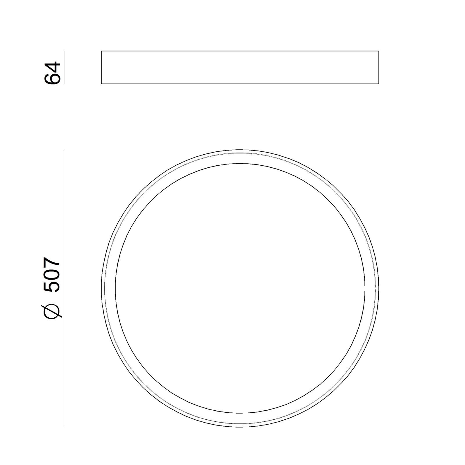 Plafone a singola emissione per applicazione indoor. La sorgente luminosa LED, di colore bianco caldo, con distribuzione luminosa General Lighting, è composta da 1 LED topled, con una CCT 3000 K ed un CRI 80; il flusso luminoso della sorgente è di 4883 lm, con un'efficienza nominale di 119.1 lm/W.
